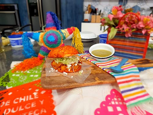 4. Para el montaje, servir los pambazos y, si lo desea, acompañar con salsa verde cocida.
